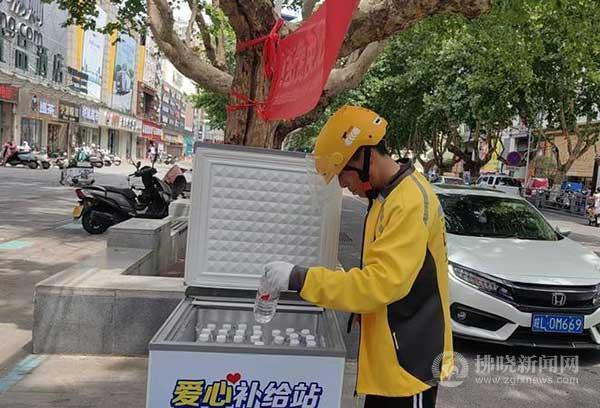 拂曉新聞網(wǎng)--拂曉報(bào)訊 “這個(gè)‘愛(ài)心冰箱’設(shè)置得非常及時(shí),為我們送來(lái)了清涼。感謝你們!”7月25日上午,在宿城東昌路附近送快遞的陳先生對(duì)正在為“愛(ài)心冰箱”補(bǔ)貨的志愿者說(shuō)。