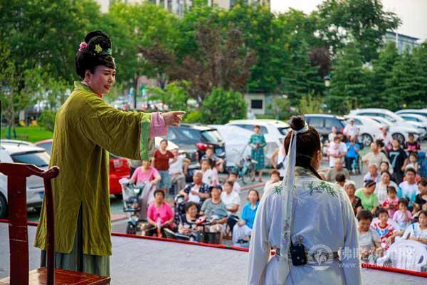 8月7日,戲曲演員在表演節(jié)目。當(dāng)日,埇橋區(qū)南關(guān)街道九中社區(qū)開展“我們的節(jié)日·七夕”戲曲演出活動,吸引眾多居民觀看。 記者 蔣幫煜 攝