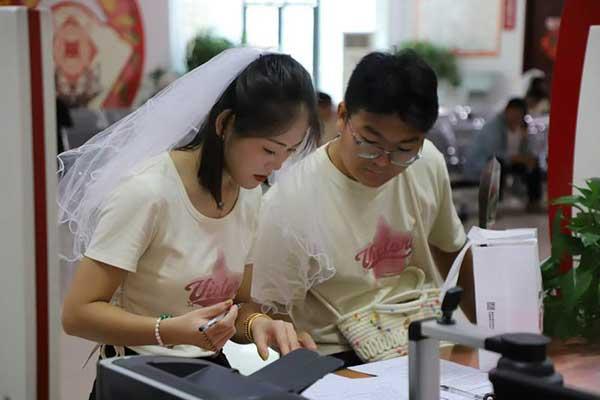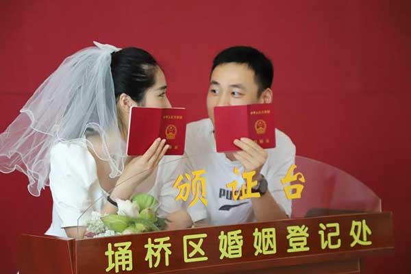 據(jù)統(tǒng)計,8月10日當天,埇橋區(qū)民政局婚姻登記處共為88對新人辦理了結婚登記。