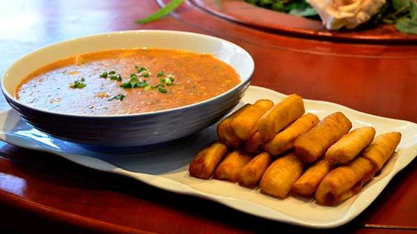 濃稠辛辣的椒糊子與酥脆筋道的油條是天生一對(duì)。一口油條就著熱乎湯下肚,從口腔一直暖到了胃里,這就是幸福的感覺。