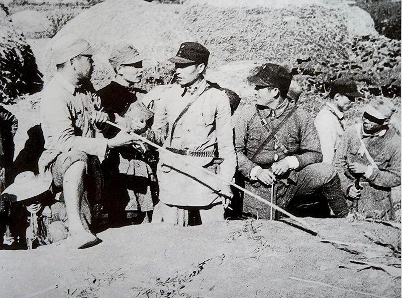 1944年8月,小朱莊戰(zhàn)斗指揮所。左起:滕海清、張震、彭雪楓、周純麟、張永遠(yuǎn)。