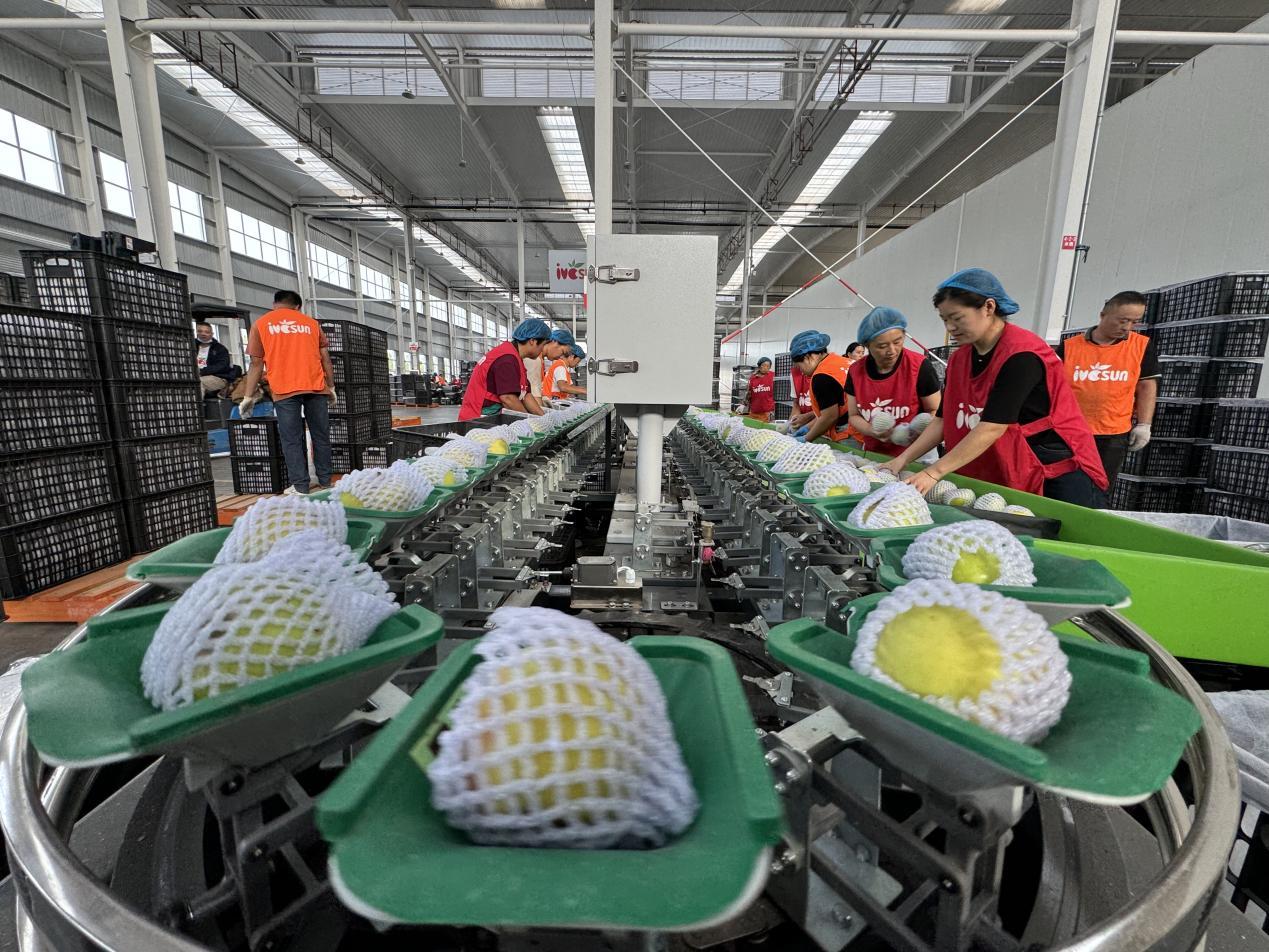 “我們的分揀線原來是6條線需要6個工人,現(xiàn)在6條線只要1人。”安徽愛澤供應(yīng)鏈管理有限公司總經(jīng)理王輝向記者介紹。安徽愛澤供應(yīng)鏈管理有限公司不斷精進(jìn)設(shè)備技術(shù),采用的先進(jìn)全自動分揀設(shè)備不僅分揀誤差率低,更是提高了分揀效率、水果加工的質(zhì)量和出品等級。同時安徽愛澤供應(yīng)鏈管理有限公司有面積約10萬立方米的冷庫,已成為集冷凍、冷藏、加工、包裝、銷售為一體的現(xiàn)代公共倉儲冷鏈物流中心,為碭山暢通城鄉(xiāng)經(jīng)濟循環(huán)、助農(nóng)增收和鄉(xiāng)村振興打下堅實基礎(chǔ)。