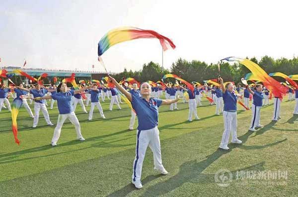 市民在市體育場(chǎng)表演健身項(xiàng)目。特約攝影 張成伍