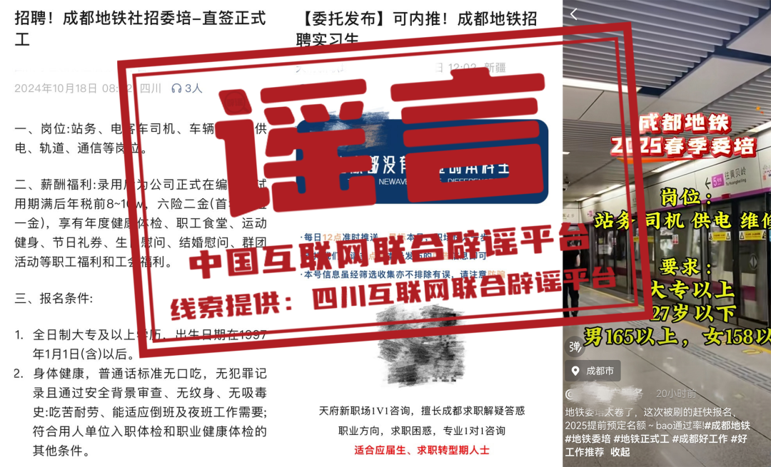 謠 言成都地鐵招聘“提前預(yù)定名額”?濟(jì)南地鐵校園招聘有“真題”?