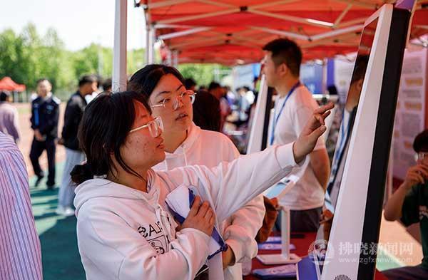 宿州職業(yè)技術(shù)學院畢業(yè)生在查看招聘會的崗位信息。