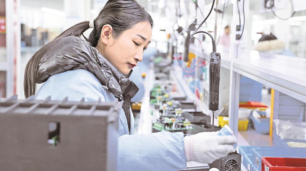 安徽海尚變頻技術(shù)有限公司的工人在車間進(jìn)行焊接。記者 王明輝 攝