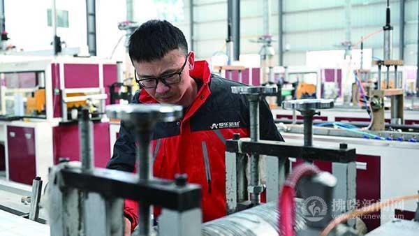 安徽恒昌新材料有限公司工人正在操作生產(chǎn)設(shè)備。