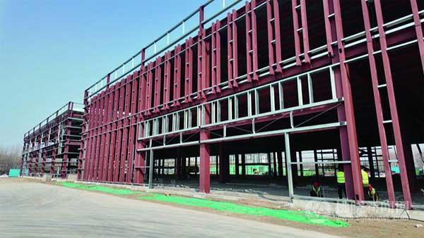 正在建設中的華利安(安徽)服裝有限公司的鋼結構廠房。