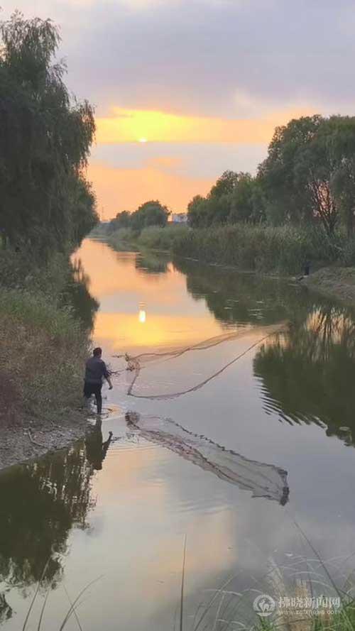 一個五六十歲的男子走過來,手里提著一張漁網(wǎng)。他走下橋,踩著滿坡野草走到水邊,立住,一轉(zhuǎn)身,一揚手,拋出他的網(wǎng)。網(wǎng)在夕輝里閃了個弧線,嘩地落進(jìn)水里,將夕陽的影子砸成一片碎金。河窄水淺,轉(zhuǎn)瞬便收,他兩手交替拉扯著網(wǎng)繩,直到一張網(wǎng)盡入手中。我笑了,一條魚也沒有。他打撈出來的是一兜金色的陽光。