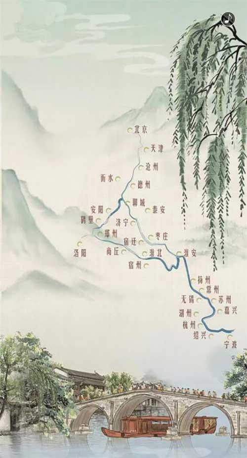 我的書房貼著一張自己打印的運河水系圖。以洛陽為中心的隋唐大運河,像華夏大地一個大寫的“人”字,一撇向東南抵達(dá)杭州,一捺向東北指向北京,她絲帶一樣長長地飄著,將海河、黃河、淮河、長江、錢塘江牽連貫通。地圖上,650公里的通濟渠,似乎占了撇的一半還多,撇至小半處的那個點,就是我的家鄉(xiāng)宿州。