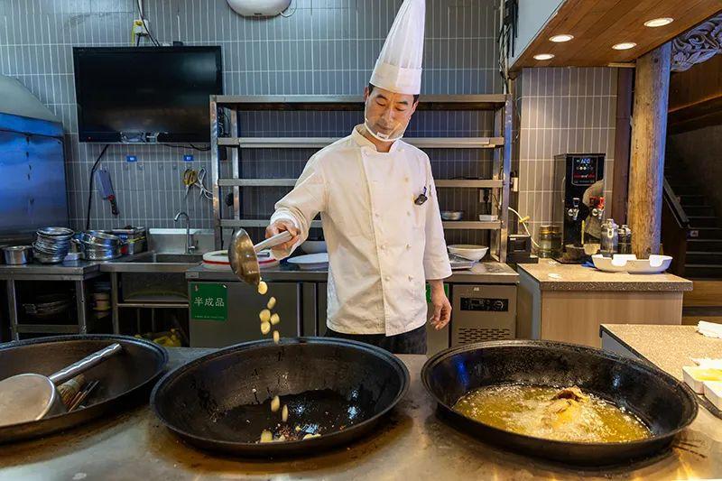 “這道菜主材必是濉河紅鯉,它魚身修長,肉質(zhì)緊實、鮮嫩?!睆埓髲N說。他手持菜刀的樣子活像執(zhí)筆寫詩——刮鱗是起承轉(zhuǎn)合,改刀是平仄對仗。隨后,將淀粉與面粉混合,均勻裹在魚身,形成一層薄薄的“盔甲”。鍋中下油,魚入鍋時,“滋啦”一聲,白煙騰起,魚皮迅速收緊,鎖住鮮嫩。另起一鍋,蔥姜蒜爆香,待香氣四溢,倒入清水熬汁。水沸后,將炸好的魚輕輕滑入,大火燒開,轉(zhuǎn)小火慢燉。此時,魚肉已熟,只需讓湯汁的鮮美緩緩滲入肌理。
