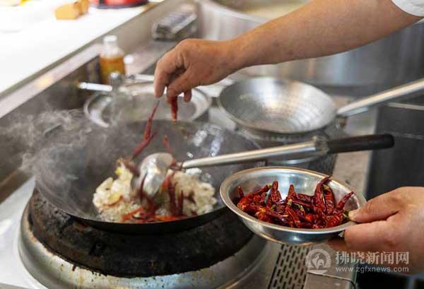 張崇采用的是宿州傳統(tǒng)的做法。雞塊焯水去腥,熱油爆香蔥姜蒜,再扔一把干辣椒、八角、花椒,“滋啦”一聲,香味瞬間炸開。雞肉下鍋翻炒,直到表皮微微焦黃,這時候倒上一勺老抽、料酒,再加點(diǎn)香料,香味立刻竄上房梁。
