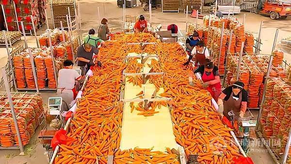 胡蘿卜大豐收,也帶動周邊村民就業(yè)?;乩鋷烨逑窜囬g有120多名工人,都是附近的村民,每天工資不低于300元,有的能達到500元。蔣山村村民張朋說:“我常年在這里務(wù)工,一天收入300-400元,一年能賺到10余萬元,還能照顧家庭?!?/p>