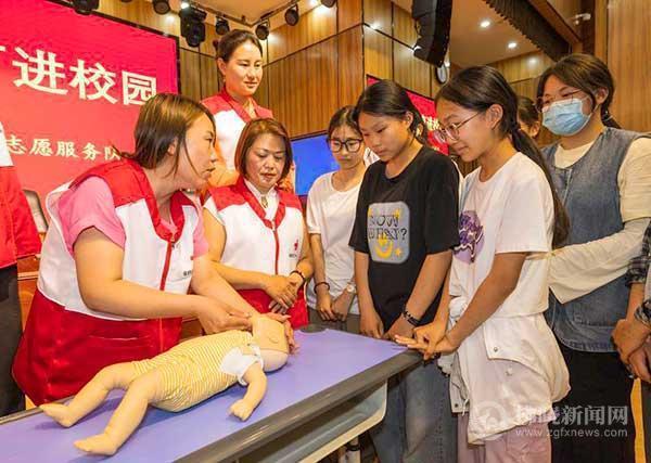 5月20日,埇橋區(qū)三八街道紅十字志愿服務(wù)隊(duì)在宿州十一中銀河四路校區(qū),舉行“防溺水安全教育進(jìn)校園”活動。志愿者通過設(shè)置安全知識宣傳欄、發(fā)放防溺水安全知識單、演示防溺水措施等方式,與學(xué)生們互動交流,并邀請學(xué)生代表現(xiàn)場演練,為大家?guī)硪惶谩俺两健狈滥缢n,提高了孩子們的防溺水安全意識和避險自救能力。記者 蘇洋 攝