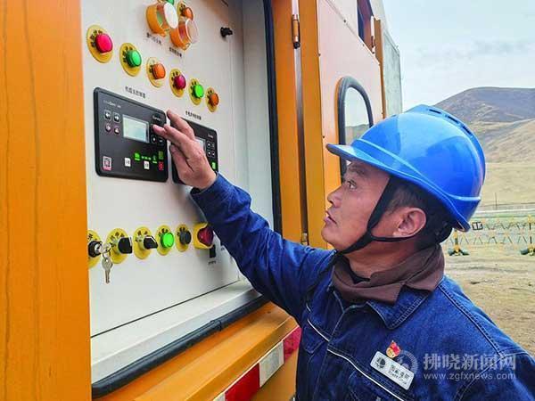 “稱多縣10千伏稱三路和稱四路是全縣負荷最大的兩條線路,關(guān)系到3000多戶居民的用電安全?!币曨l連線中,陳石科的聲音因高原反應略顯沙啞。鏡頭里,他正在指導當?shù)仉娏と瞬僮靼l(fā)電車,身后是呼嘯的風沙和簡易的帳篷。