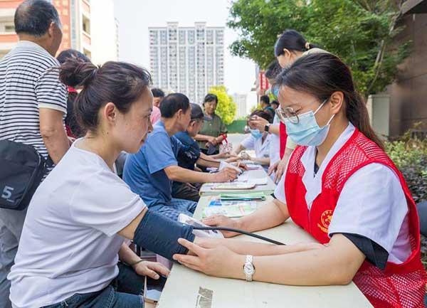 6月9日,埇橋區(qū)三里灣街道三里灣社區(qū)在中梁首府小區(qū)開展“健康義診進社區(qū) 便民服務(wù)暖人心”志愿服務(wù)活動。活動現(xiàn)場,街道社區(qū)衛(wèi)生服務(wù)中心醫(yī)務(wù)人員為居民免費檢查血壓、血糖、口腔等,并向大家普及科學(xué)飲食知識及定期體檢的重要性,增強居民健康保健意識。記者 蘇洋 攝