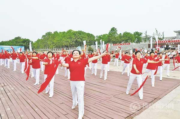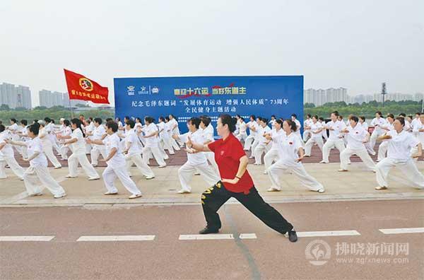 拂曉新聞網(wǎng)--拂曉報訊(文/通訊員 楊旭 圖/特約攝影 張成伍)日前,我市紀念毛澤東題詞“發(fā)展體育運動 增強人民體質(zhì)”73周年全民健身主題活動在宿州市新汴河景區(qū)拉開帷幕。此次活動由市教體局主辦、市各體育運動協(xié)會承辦,同時也拉開了“喜迎十六運 當好東道主”系列活動的序幕。來自全市10多個體育運動協(xié)會的近千名體育健身愛好者同場獻藝,掀起全民健身熱潮。