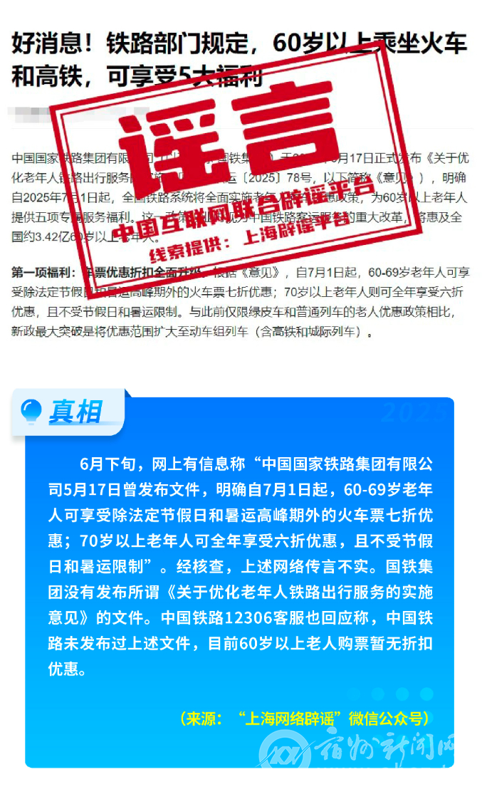 假的!爆炸致多人死亡、浙江省山體滑坡、老人坐火車打折、貴州“村超”被叫停 中國互聯(lián)網(wǎng)聯(lián)合辟謠平臺2025年6月辟謠榜