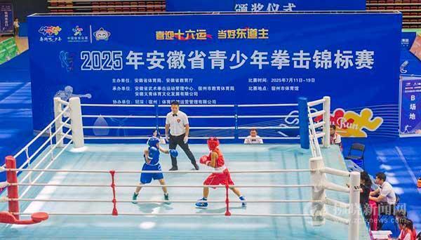 拂曉新聞網(wǎng)--拂曉報(bào)訊(文/記者 秦雨婷 圖/記者 蘇洋 蔣幫煜)7月14日下午,2025年安徽省青少年拳擊錦標(biāo)賽在宿州市體育館拉開戰(zhàn)幕。本次大賽由省體育局、省教育廳聯(lián)合主辦,省武術(shù)拳擊運(yùn)動(dòng)管理中心、宿州市教育體育局及安徽義青體育文化發(fā)展有限公司共同承辦。