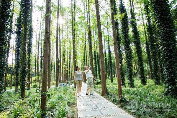 7月19日,在宿城沱河公園水杉林景觀帶(西昌北路橋以東),高大挺拔的水杉林整齊排列,濃密的樹冠撐起連綿的“綠傘”,把盛夏的暑氣隔離在外,讓前來消暑休閑的游客和市民宛如進(jìn)入童話世界里的“綠野仙蹤”。近年來,我市在園林城市建設(shè)上按照“一景一品”特色,全力打造“百園融城”的生態(tài)景觀格局。記者 馬峰 攝