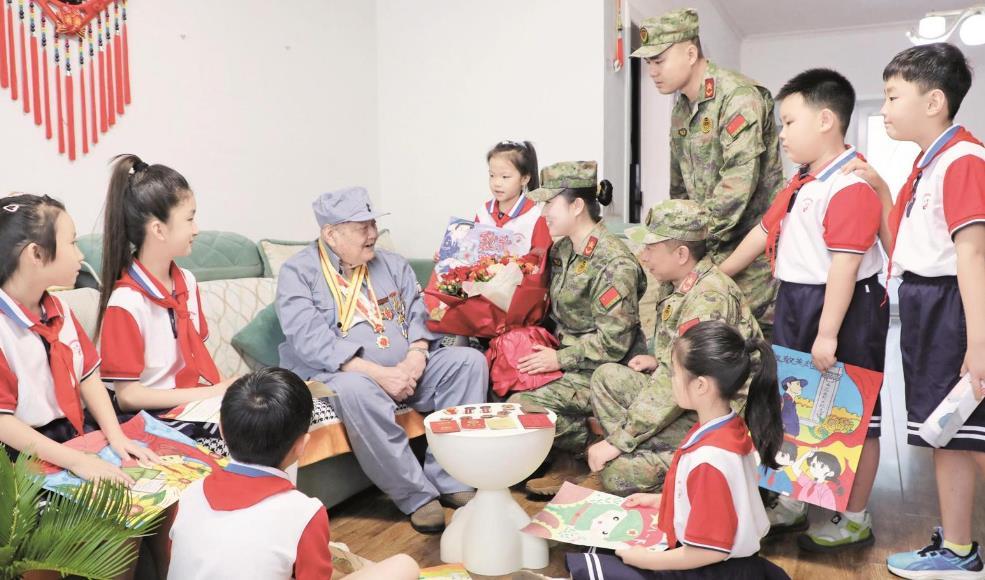 八一建軍節(jié)前夕,蕭縣軍地聯(lián)合開展“致敬抗戰(zhàn)老兵”走訪慰問活動,為老兵們送上敬意和祝福。在抗戰(zhàn)老兵李洪斌家中,走訪小組和少先隊員聆聽老兵講述戰(zhàn)斗經(jīng)歷。 馮莉 攝