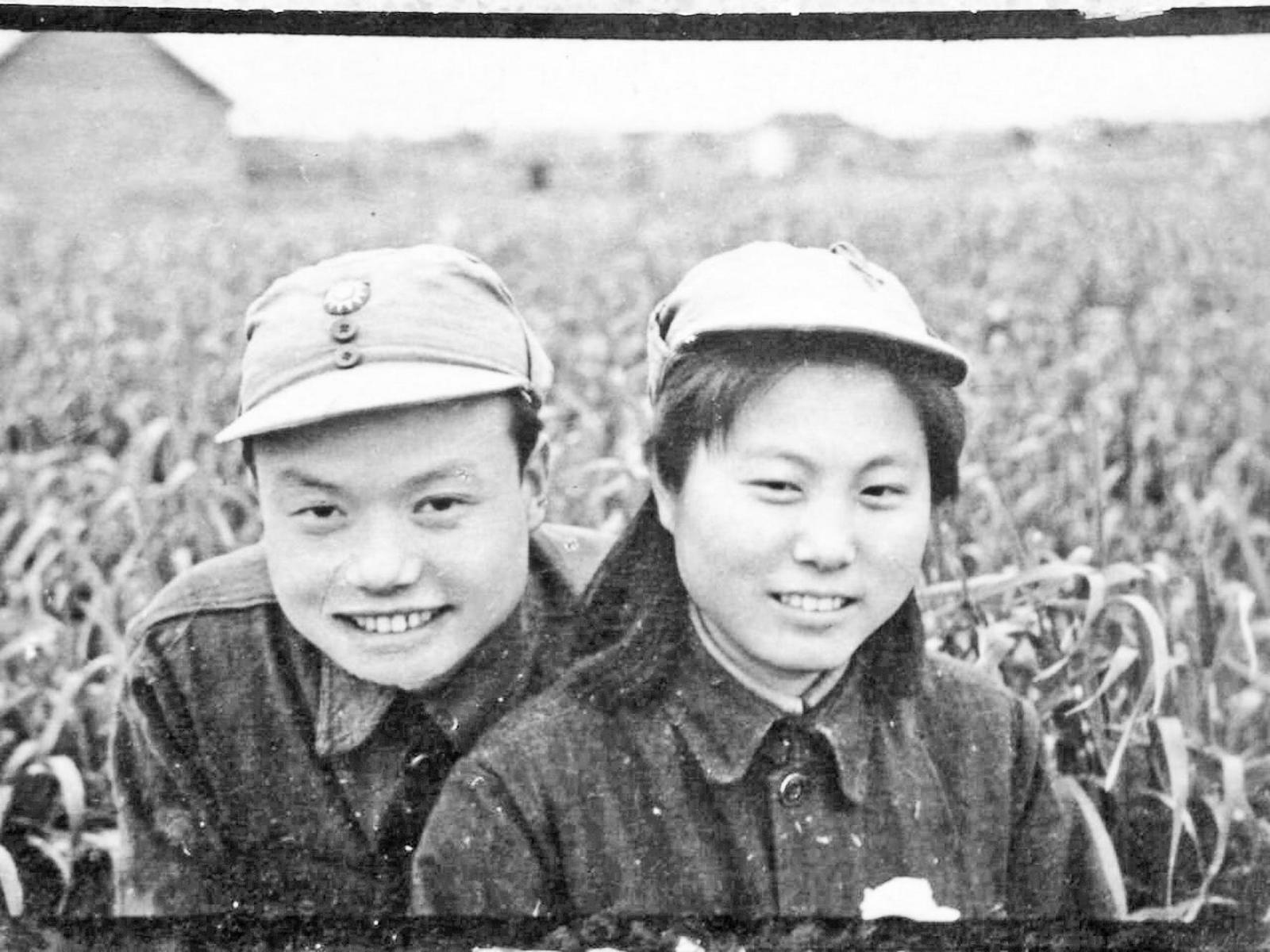 1945年,單斐、李欣在洪澤湖畔半城師政治部的合影。