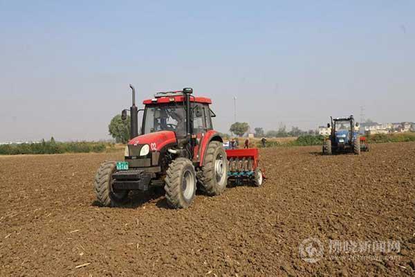 日前,埇橋區(qū)西二鋪鎮(zhèn)葛林村村民利用大型播種機(jī)在播種小麥。