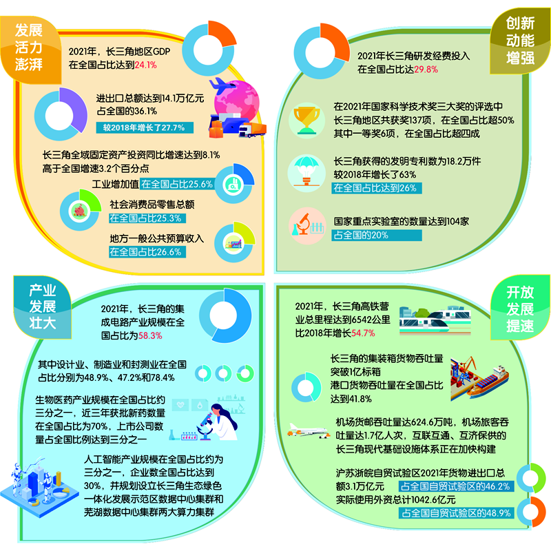 從投資到進(jìn)出口,再到工業(yè)、消費和財政收入,這些指標(biāo)都反映了2021年長三角經(jīng)濟(jì)發(fā)展的平穩(wěn)向好態(tài)勢,也彰顯了長三角在全國發(fā)展大局中的重要地位。