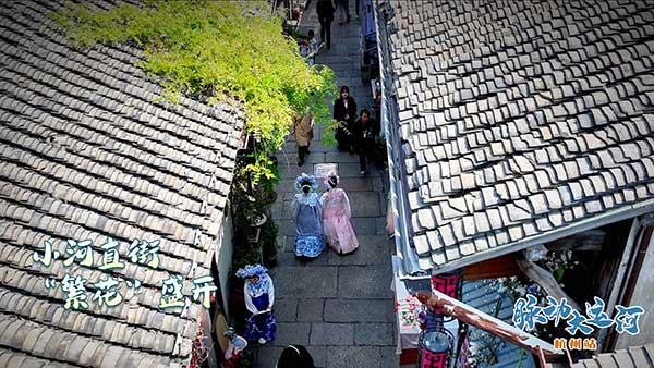 歲月更迭,小河直街見證了運河畔的沉寂與新生。沿街樓宇枕水而居,古韻滿滿的街區(qū)不僅留存了運河的市井文化,還融合了簪花、手作、圍爐煮茶、貓咖等備受年輕人歡迎的新風(fēng)尚。在這里,每隔幾步就能見到一位身著漢服的簪花美人,從寧靜到繁華,簪花見證了許多因運河而興的店鋪,也讓我們看到了古運河旁正在孕育的新生機(jī)。