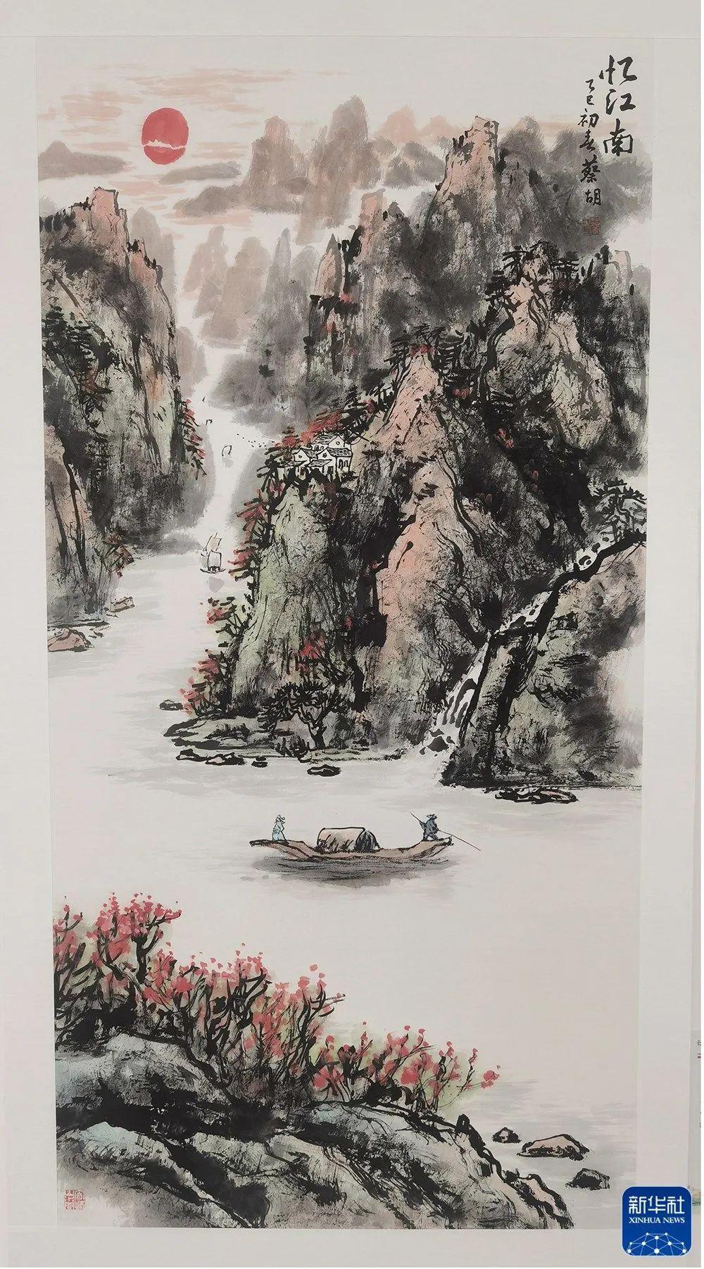 參展國畫作品《憶江南》,作者蔡胡。新華社客戶端發(fā)(詹燕南 攝)