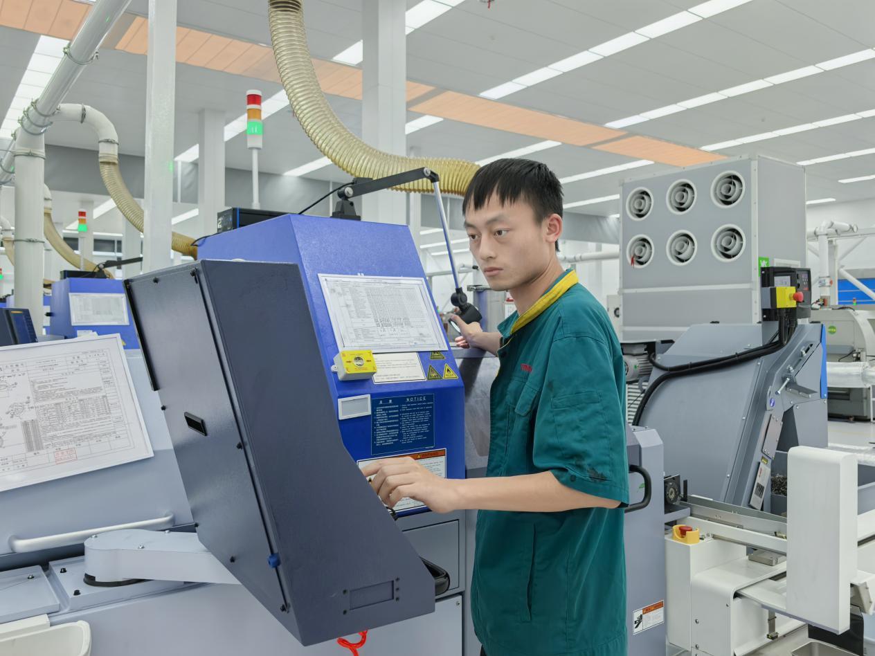 碭山邁瑞醫(yī)療產(chǎn)業(yè)基地工人操作生產(chǎn)設(shè)備。
