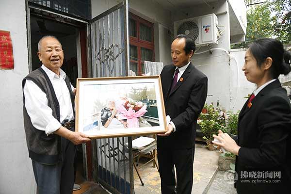 10月19日上午,埇橋區(qū)人民法院為94歲離休老干部王運(yùn)峰送去重陽節(jié)禮物——一幅制作精美的合影?!?a href="http://m.0770257.cn/zhuanti/content/2023-10/21/content_31069.html" target="_blank">【詳細(xì)】