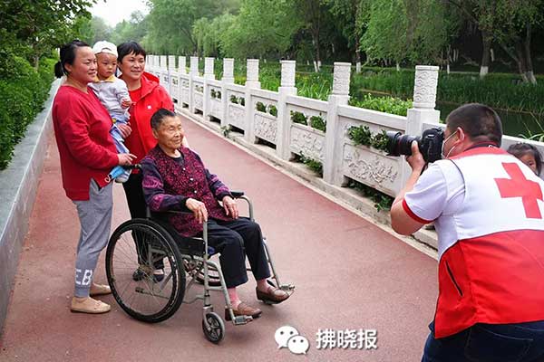 志愿者為群眾拍照