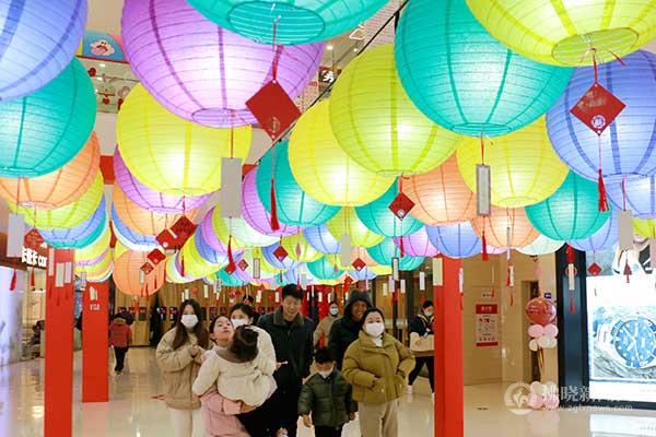 宿城汴河路一家商場(chǎng)內(nèi),消費(fèi)者在迎新年“許愿燈”下祈福。 特約攝影 丁輝