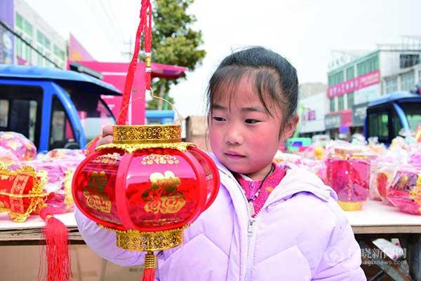 2月2日,居民在埇橋區(qū)順河鎮(zhèn)集市上選購(gòu)花燈。元宵佳節(jié)來(lái)臨,我市城鄉(xiāng)市場(chǎng)各種花燈俏銷。居民帶著孩子選購(gòu)心儀的花燈,歡歡喜喜鬧元宵。特約攝影 祝家剛