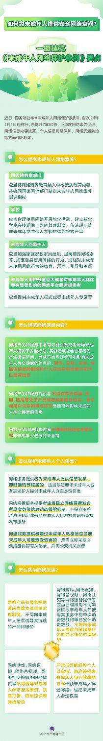 國務院近日公布《未成年人網(wǎng)絡保護條例》,該條例自2024年1月1日起施行。這是我國出臺的第一部專門性的未成年人網(wǎng)絡保護綜合立法,重點就規(guī)范網(wǎng)絡信息內(nèi)容、保護個人信息、防治網(wǎng)絡沉迷等作出規(guī)定。