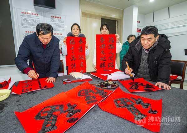 1月19日,埇橋區(qū)南關(guān)街道淮海社區(qū)舉行“翰墨飄香暖民心”迎新春送春聯(lián)活動(dòng)?,F(xiàn)場,書法家們揮毫潑墨,為社區(qū)居民寫春聯(lián),喜迎新春佳節(jié)。記者 蘇洋 攝