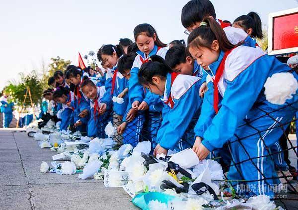 3月26日,宿州市第一小學(xué)學(xué)生在宿州烈士陵園向革命先烈敬獻(xiàn)鮮花。記者 蔣幫煜 攝